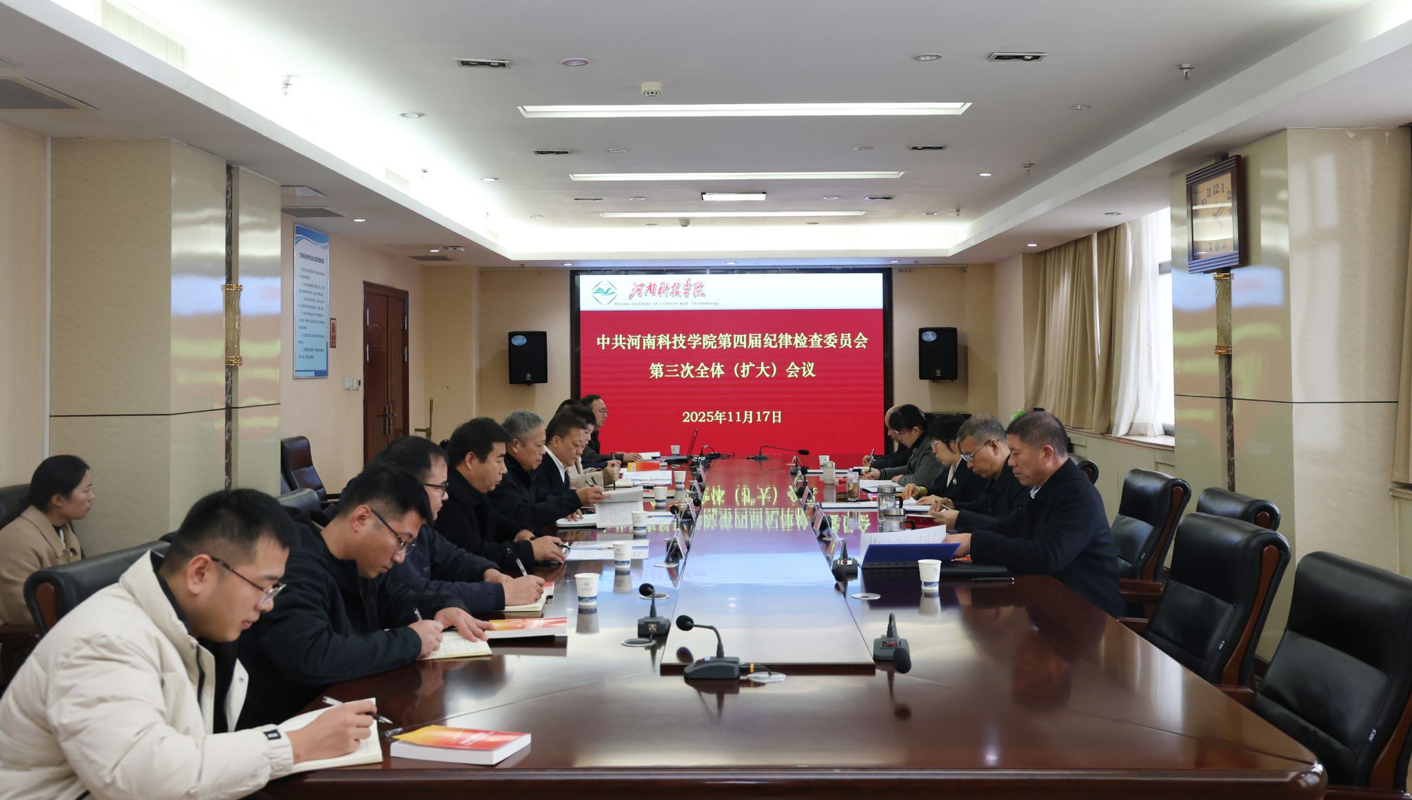 11月17日下午,中共河南科技学院第四届纪律检查委员会第三次全体(扩大)会议在办公楼901会议室召开。全体校纪委委员和校纪委监察专员办公室全体同志参加会议。校纪委书记、监察专员王莉华出席并主持会议。